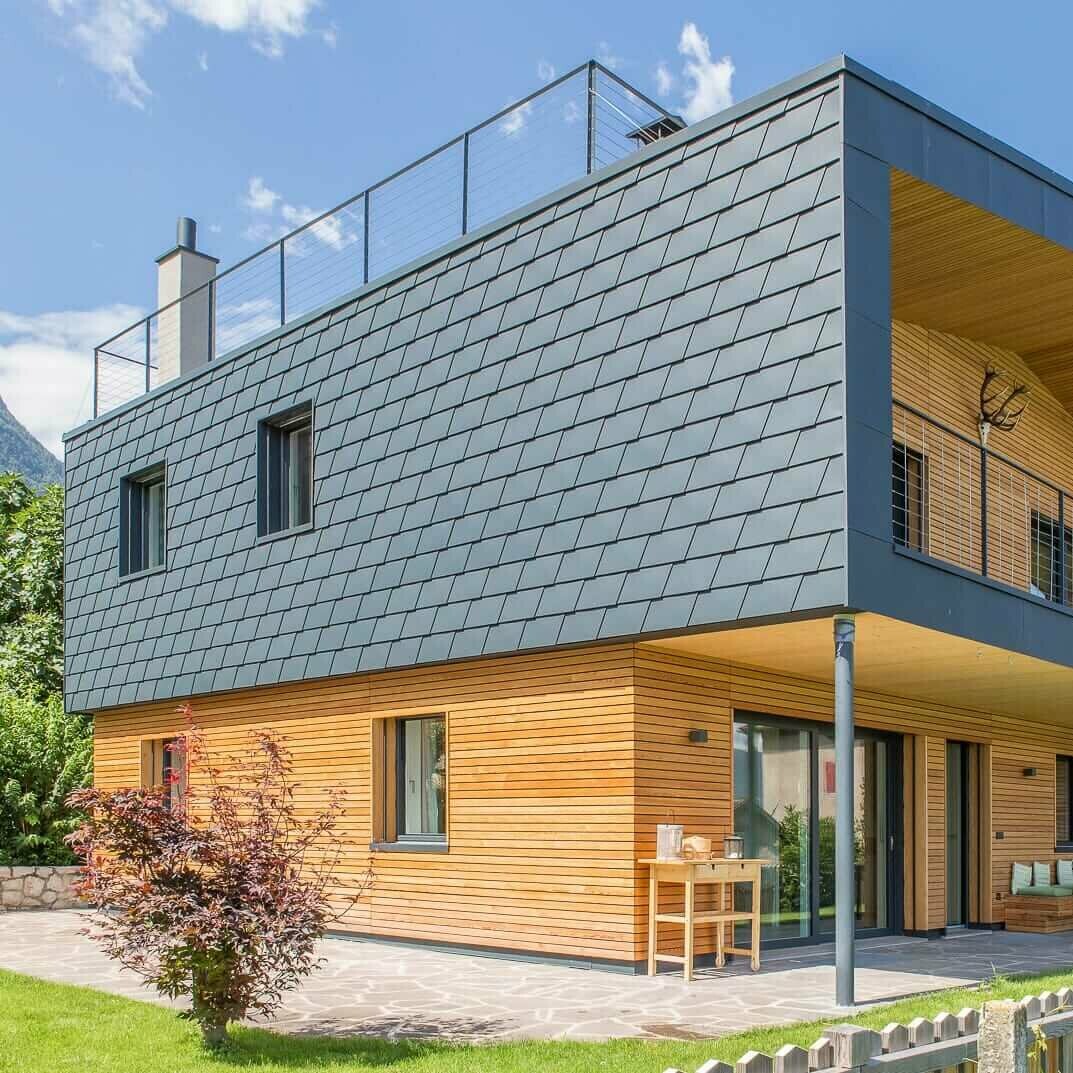 Maloformátové fasádní šindele jsou oblíbenou klasikou v oblasti vzhledu fasád. Díky tomu, že se jedná o poddajný produkt, lze s ním realizovat jak malé a členité, tak i zaoblené fasády – samozřejmě vždy v dokonalé technické kvalitě. Ale také opticky poskytují maloformátové fasádní šindele PREFA díky skrytému upevnění krásný obraz, který vyhoví nejpřísnějším nárokům.