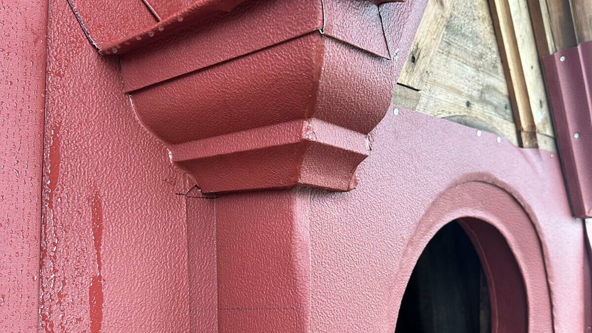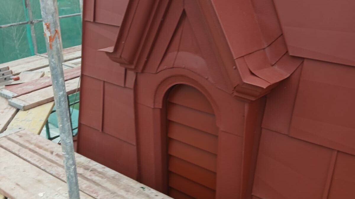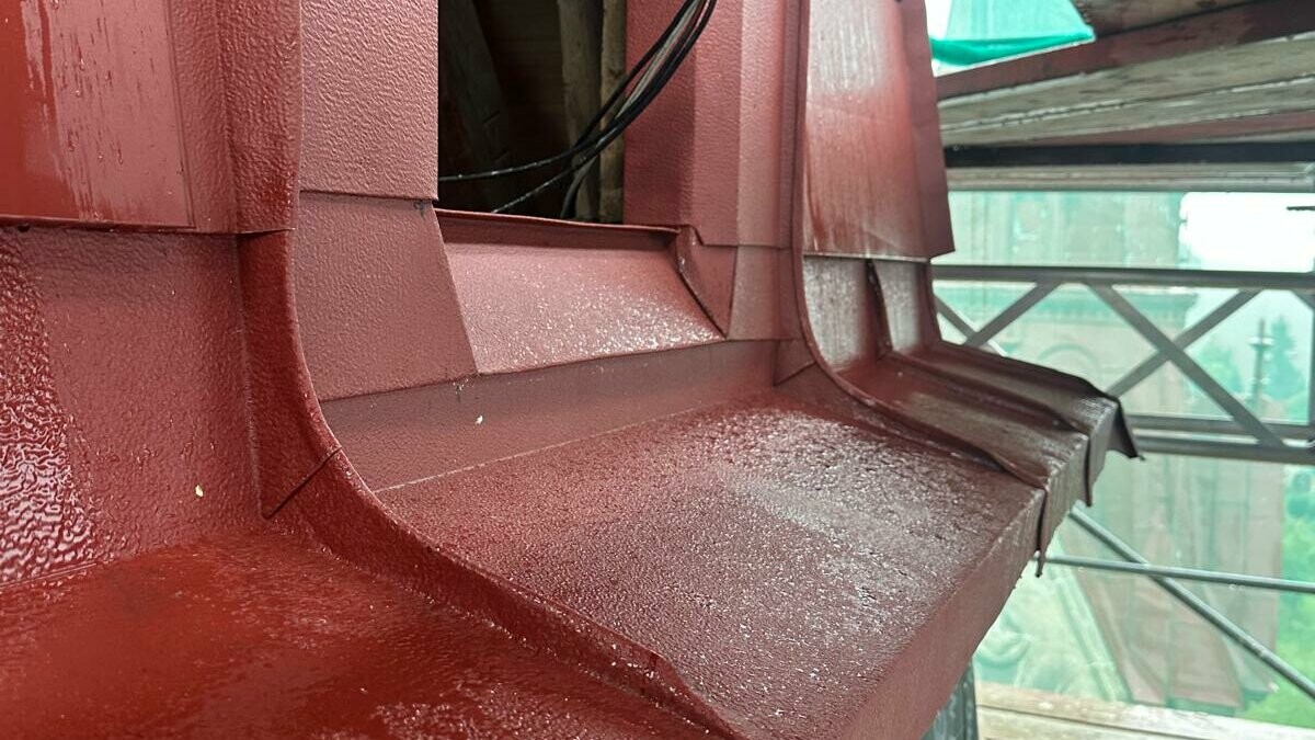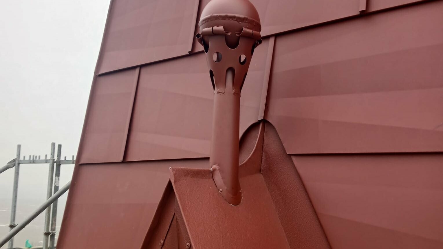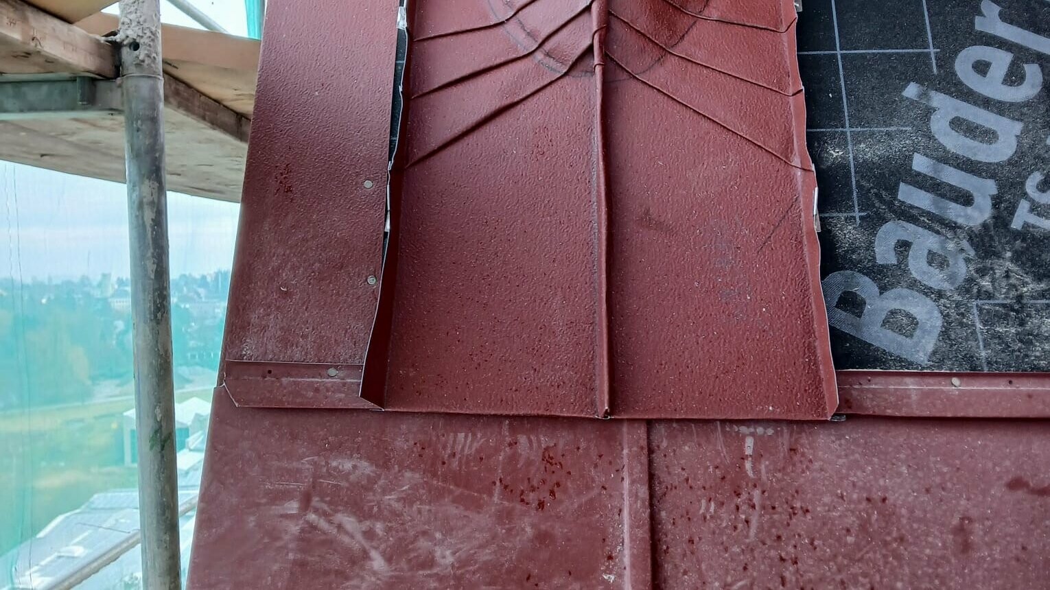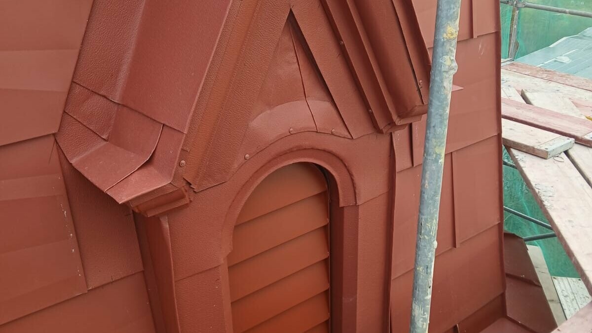 Kromě FX.12 byla při rekonstrukci použita také drážková krytina PREFALZ zejména na různá lemování a klempířské či ozdobné detaily. Obě střešní krytiny jsou