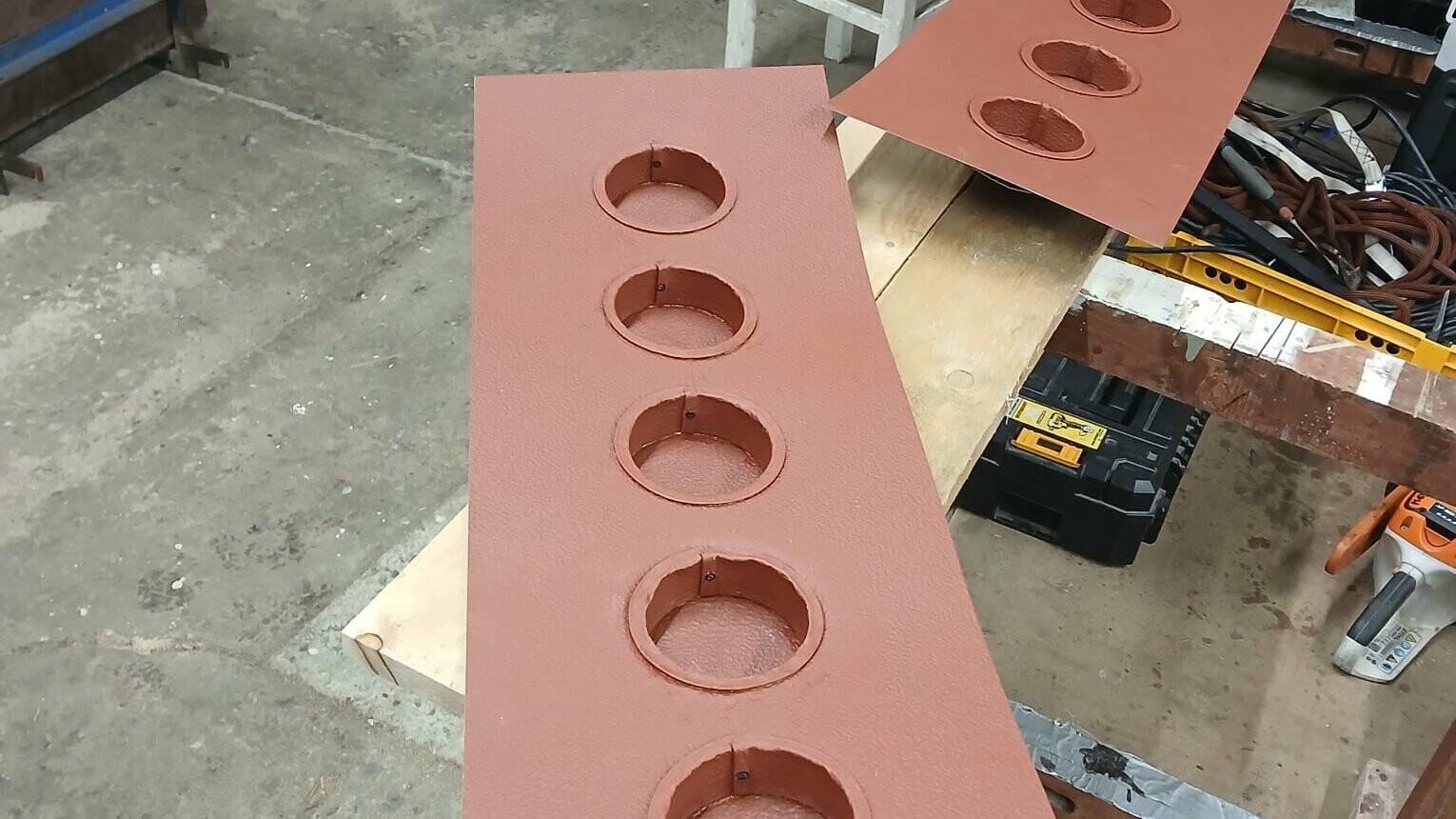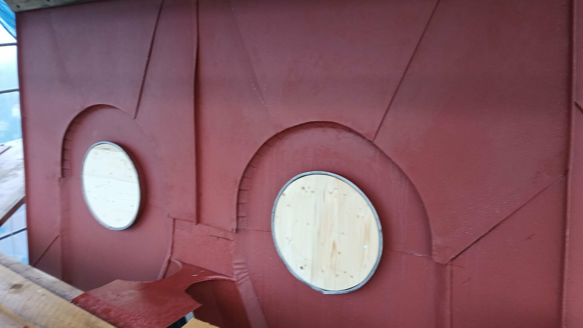 - vytvoření papírových šablon na dílně, které usnadnily následnou výrobu jednotlivých komponentů z plechu (po výrobě dílů se vše muselo poskládat na místě);