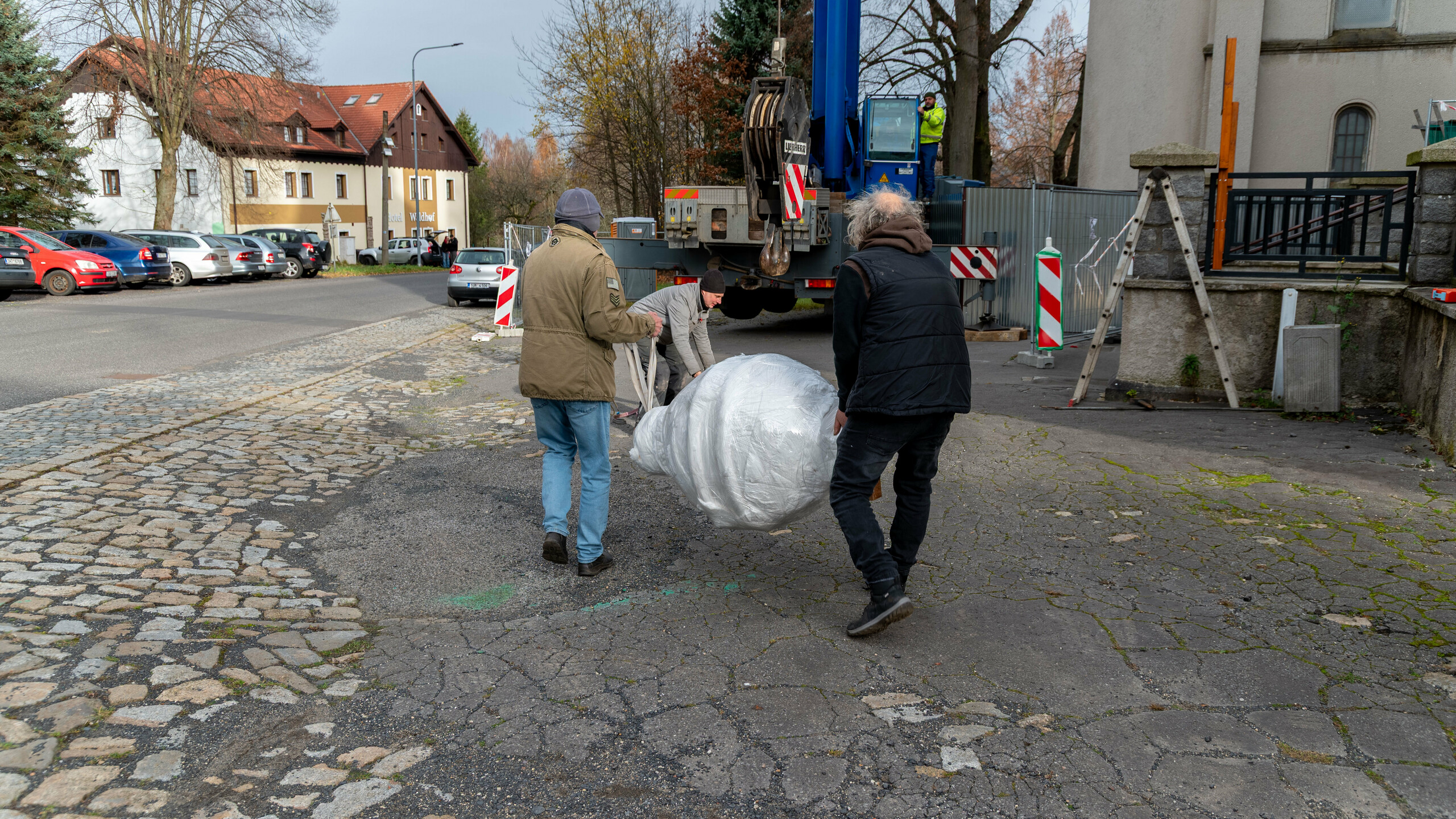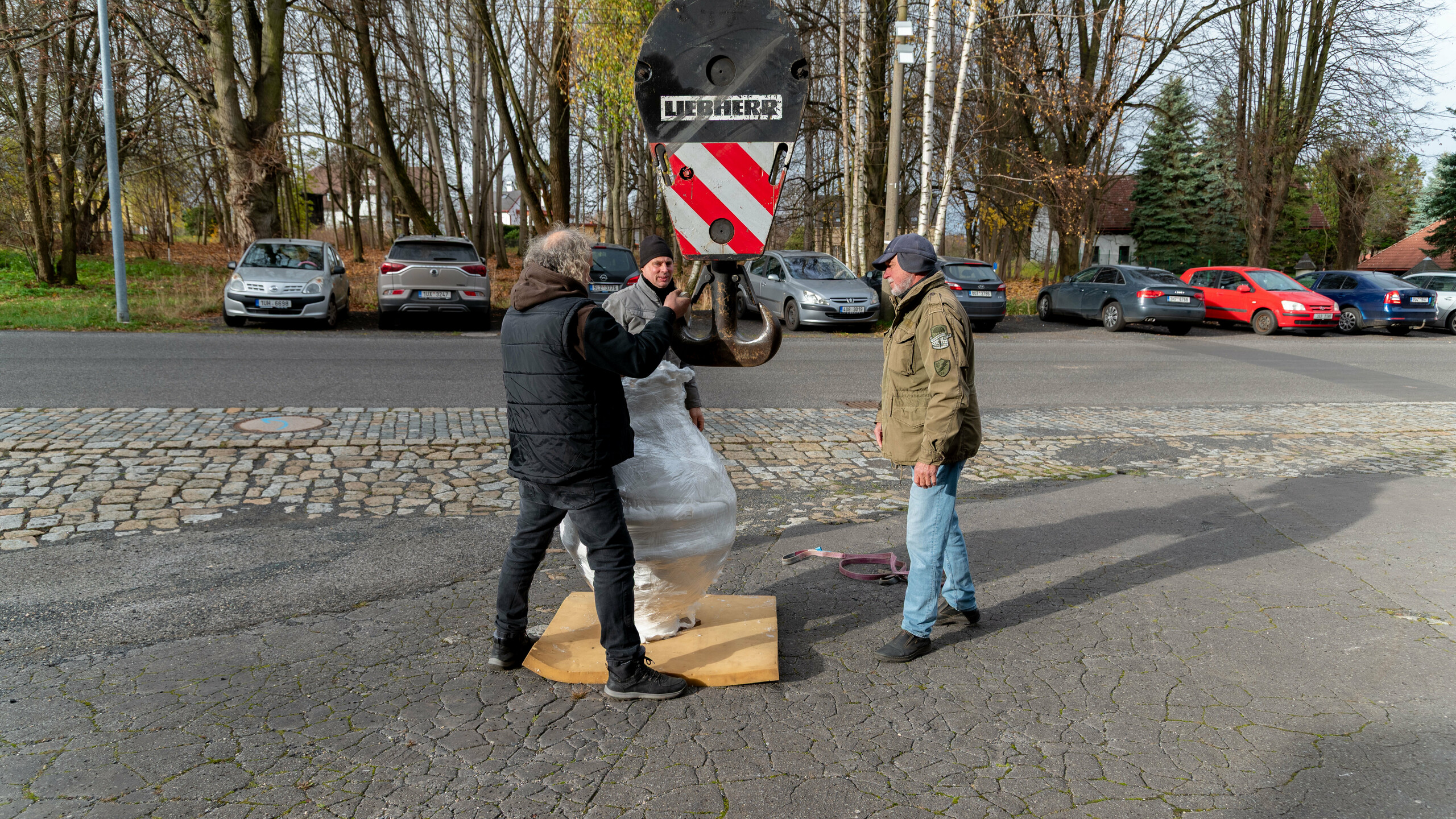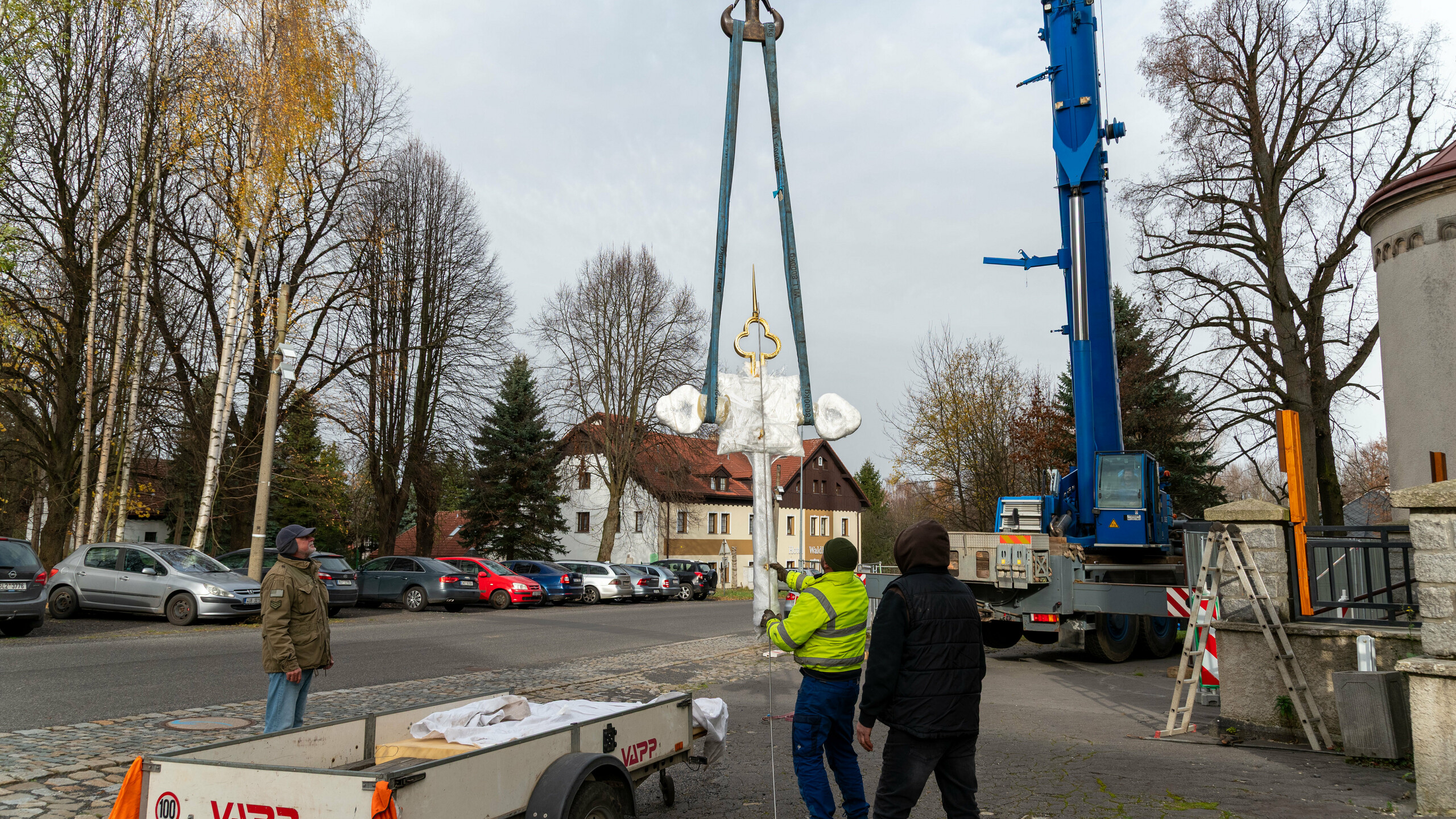 Dopravení a usazení zrestaurovaných symbolů baziliky