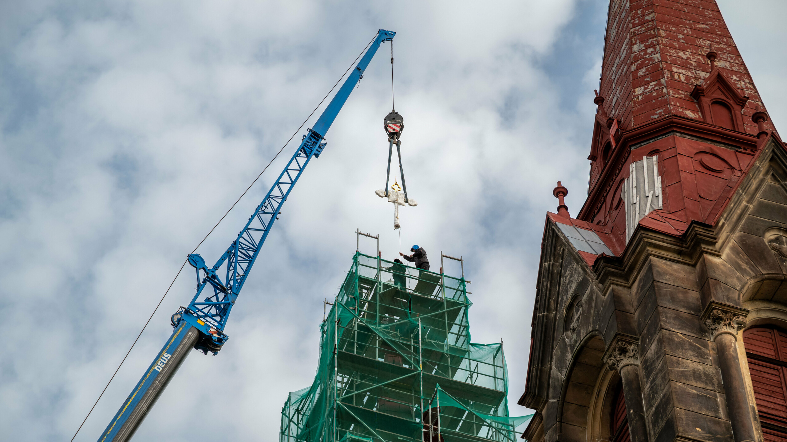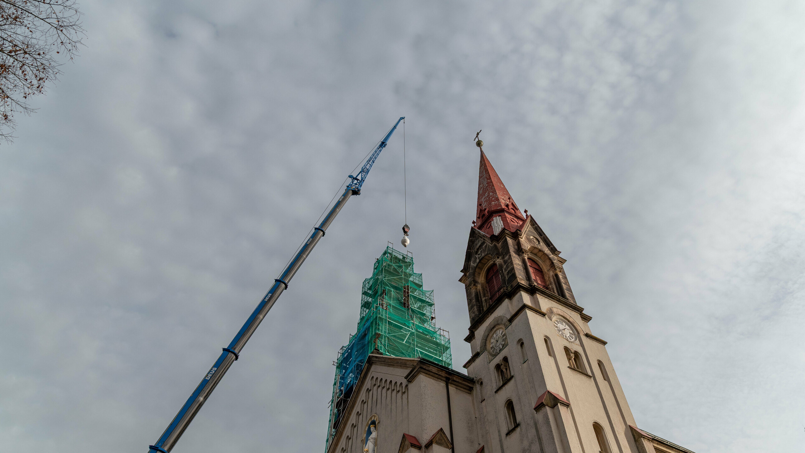 Velkou výzvou byla manipulace (demontáž a opětovné umístění) kříže vč. základové konstrukce o hmotnosti cca 250 kg a makovice o váze cca 40 kg na věž. Na místě musel být přistaven vysokozdvižný jeřáb s hydraulickým ramenem, zatímco ostatní materiál byl dopravován stavebním výtahem, a potom byl následně ručně donesen na příslušné místo na lešení kolem věže.