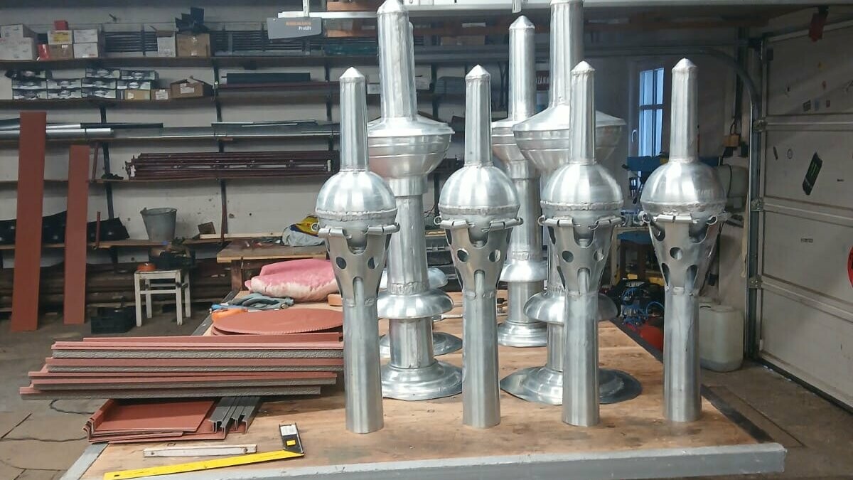 Ať už se jedná o ozdobné hrdlové vázy (klempířské vázy) nebo o klempířskou ozdobnou krytku s profilovaným okrajem a vytlačeným (prolisovaným) dekorem uprostřed, který zvyšuje tuhost plechu a zároveň plní estetickou roli. Jeden takový hliníkový disk z plechu PREFALZ nese vyobrazení Panny Marie.