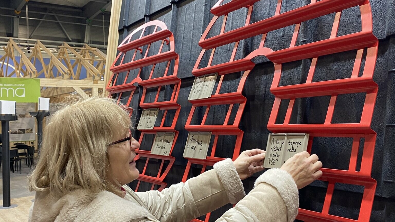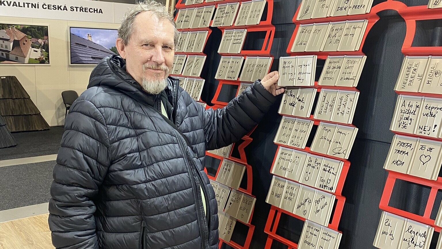 Je fascinující, že tento produkt nás provází již osm dekád. Je důkazem toho, že geniální nápady nestárnou – pouze se zdokonalují. Falcovaná taška PREFA definovala náš obor a dodnes patří k nejoblíbenějším volbám pro svou lehkost, pevnost a nadčasový vzhled. Na veletrhu jsme pro zákazníky připravili unikátní tabuli, kterou jste zaplnili svými vzkazy.